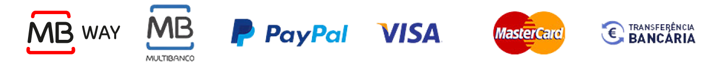 Os métodos de pagamento disponíveis são: Cartão de Crédito/Débito, MB Way, Multibanco e Cofidis Pay.